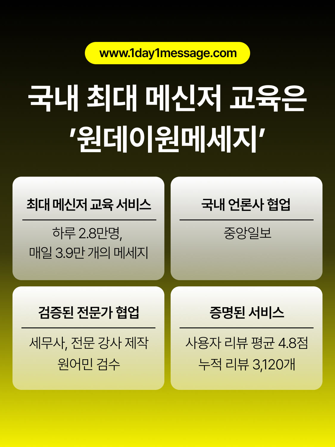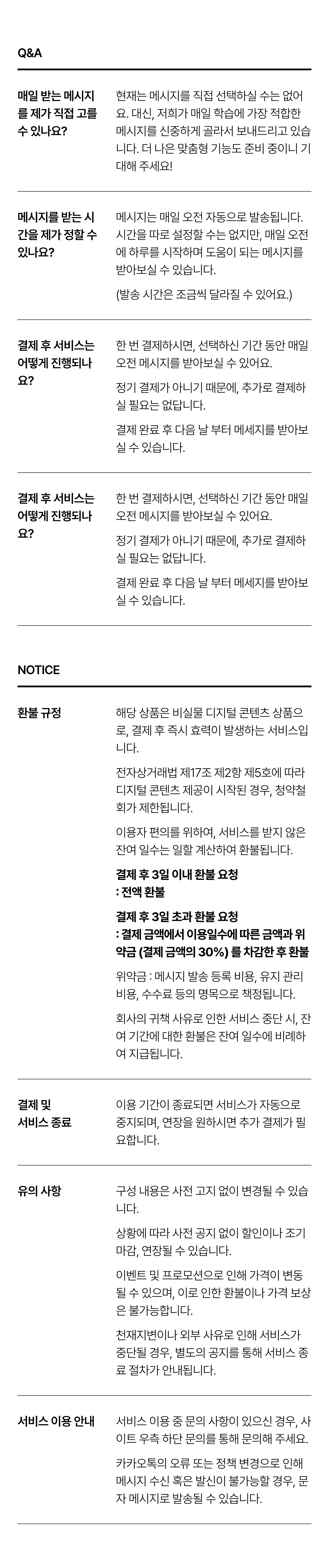 ▶︎ 정기 결제가 아닌 1회 결제 상품입니다. 선택한 기간 동안 매일 오전 새로운 메시지가 발송됩니다.